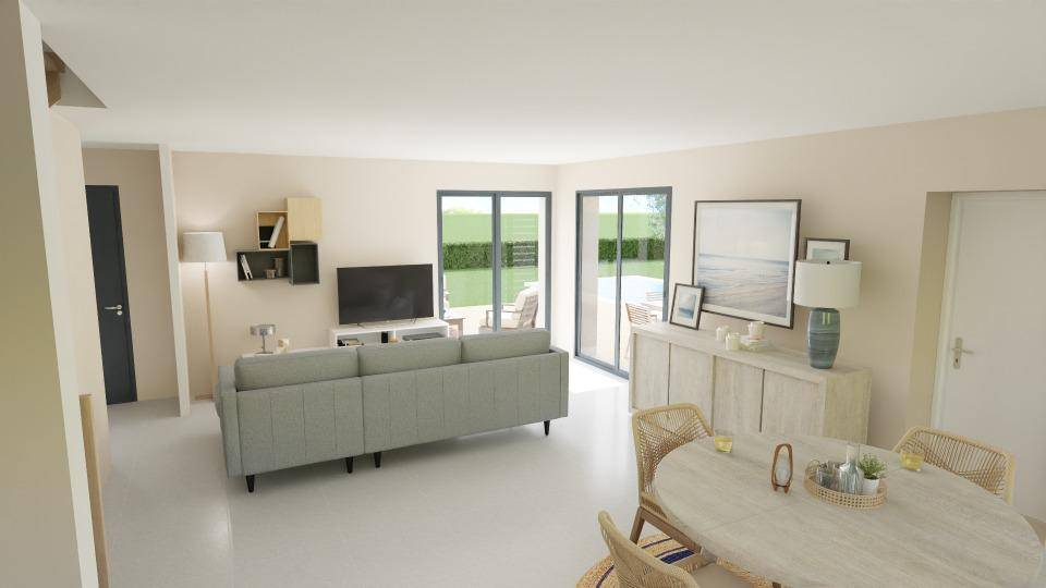 TERRAIN ET MAISONNous vous proposons cette maison neuve, modèle « »Bruyère » », conçue avec soin pour allier confort, esthétique et performance énergétique. D’une surface de 105 m², cette maison de plain-pied se distingue par son architecture soignée et ses fonctionnalités pensées pour le bien-être de ses occupants.Le modèle « »Bruyère » » vous accueille avec un auvent élégant qui couvre l’entrée et le séjour, offrant une protection solaire optimale durant l’été et ajoutant un cachet indéniable à l’ensemble. Les différents volumes de toit ne sont pas en reste, contribuant à l’attrait esthétique de cette demeure.Cette maison est conçue pour maximiser l’espace et la lumière naturelle, offrant une distribution intérieure classique mais extrêmement efficace. Initialement prévue avec 3 chambres, notre offre inclut une déclinaison à 4 chambres, répondant ainsi aux besoins des familles à la recherche d’espace supplémentaire.L’un des atouts majeurs de la « »Bruyère » » réside dans son garage intégré, pratique et esthétique, qui s’harmonise parfaitement avec le style de la maison. De plain-pied, cette maison est accessible à tous, facilitant la vie quotidienne et offrant un confort de vie inégalé.Conforme à la norme RE2020, cette maison neuve est un modèle de basse consommation, vous assurant des économies d’énergie significatives tout en respectant l’environnement. La « »Bruyère » » est donc une réponse concrète aux attentes des clients les plus exigeants, cherchant à allier confort moderne et responsabilité écologique.En choisissant le modèle « »Bruyère » », vous optez pour une maison qui répond non seulement à vos besoins d’espace et de confort mais aussi à votre engagement pour un habitat durable et économe en énergie. Ne manquez pas l’opportunité de construire la maison de vos rêves, un lieu où chaque détail a été pensé pour votre bien-être. » »Nous vous proposons cette maison neuve, baptisée « »Bruyère » », une demeure qui allie élégance et fonctionnalité sur un seul niveau, parfaitement adapté