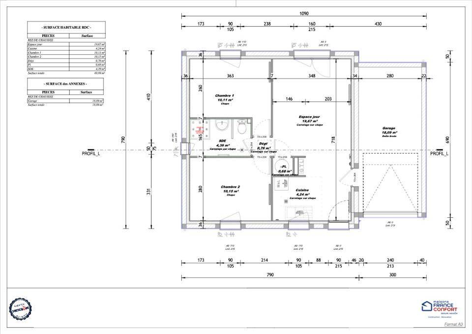 TERRAIN ET MAISONVENTE d’une maison de 4 pièces (117 m²) à Saint-Denis-lès-BourgMAISON 4 PIÈCES NEUVE – PROCHE DE BOURG-EN-BRESSEÀ vendre à quelques kilomètres de Bourg-en-Bresse, à Saint-Denis-lès-Bourg (01000), votre agence Maisons France Confort Bourg-en-Bresse est heureuse de vous présenter cette maison de 4 pièces de plain-pied de 117 m² et de 588 m² de terrain.Son intérieur dispose de trois chambres, d’une cuisine et de deux salles de bains. Cette maison est neuve.L’École Primaire Village et le Collège Yvon Morandat sont implantés à moins de 10 minutes à pied. Côté transports en commun, on trouve les gares Bourg-en-Bresse, Polliat et Servas-Lent à moins de 10 minutes en voiture. Les autoroutes A40 et A39 sont accessibles à moins de 8 km. Il y a un tennis, un bowling, des commerces, une boulangerie, un supermarché, une boucherie-charcuterie et une épicerie à proximité du logement.Son prix de vente est de 384 500 €.Prenez contact avec notre constructeur (GABRILLARGUES Sébastien : (Numéro supprimé)) pour obtenir de plus amples informations sur cette maison ou sur les démarches à suivre. Maisons France Confort Bourg-en-Bresse vous accompagne dans tous vos projets immobiliers et dans toutes vos démarches.Annonce proposée par un Agent Commercial Partenaire.
