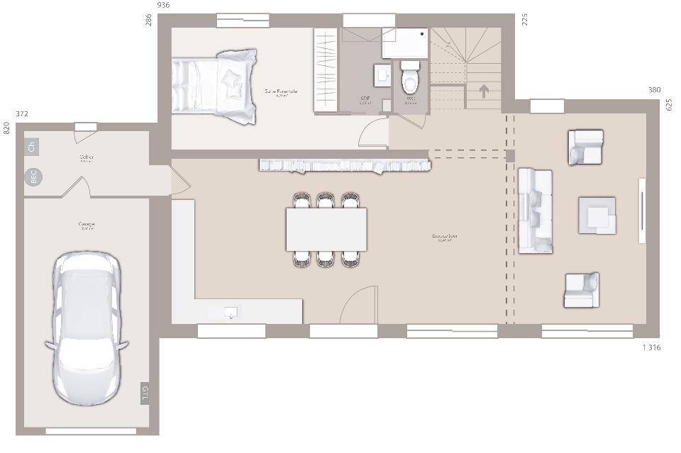 Maison à deux niveaux avec un agencement spacieux et fonctionnel