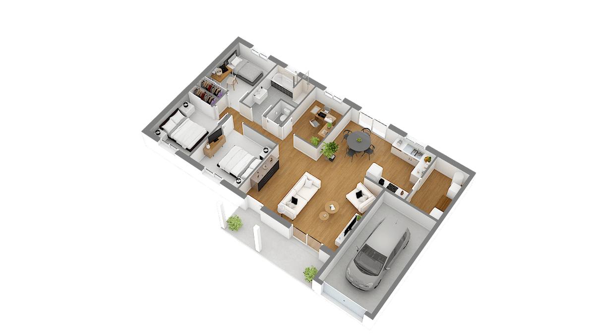 L'un des atouts majeurs de la ""Bruyère"" réside dans son garage intégré, pratique et esthétique, qui s'harmonise parfaitement avec le style de la maison. De plain-pied, cette maison est accessible à tous, facilitant la vie quotidienne et offrant un confort de vie inégalé.