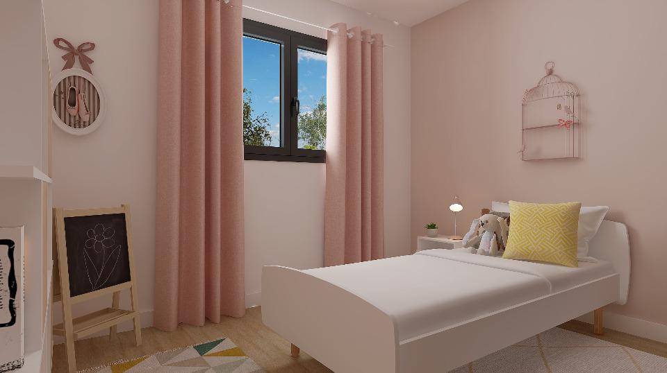 Villa a étage de 82m², avec trois chambres et une belle pièce à vivre.