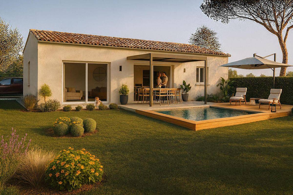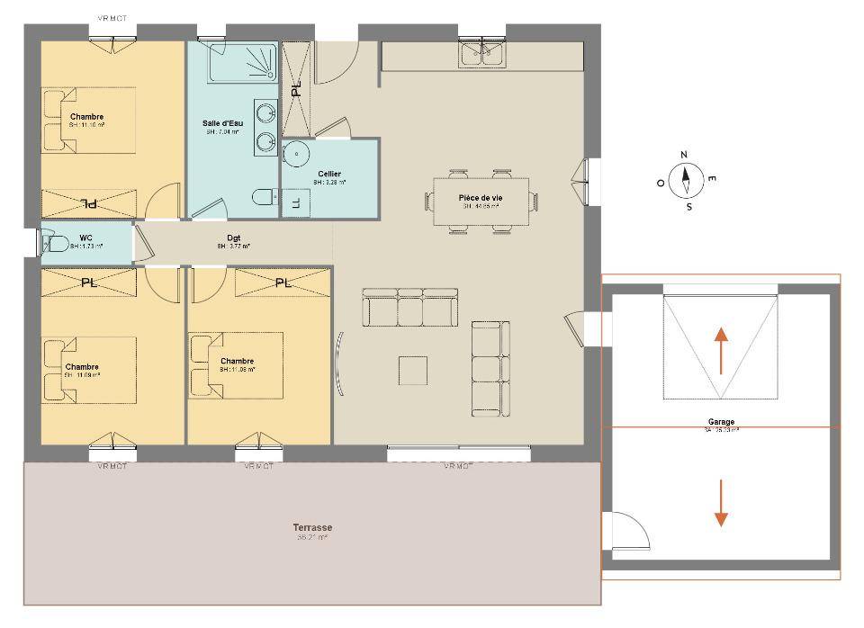 Villa plain pied de 94m², avec trois chambres et une belle pièce à vivre.