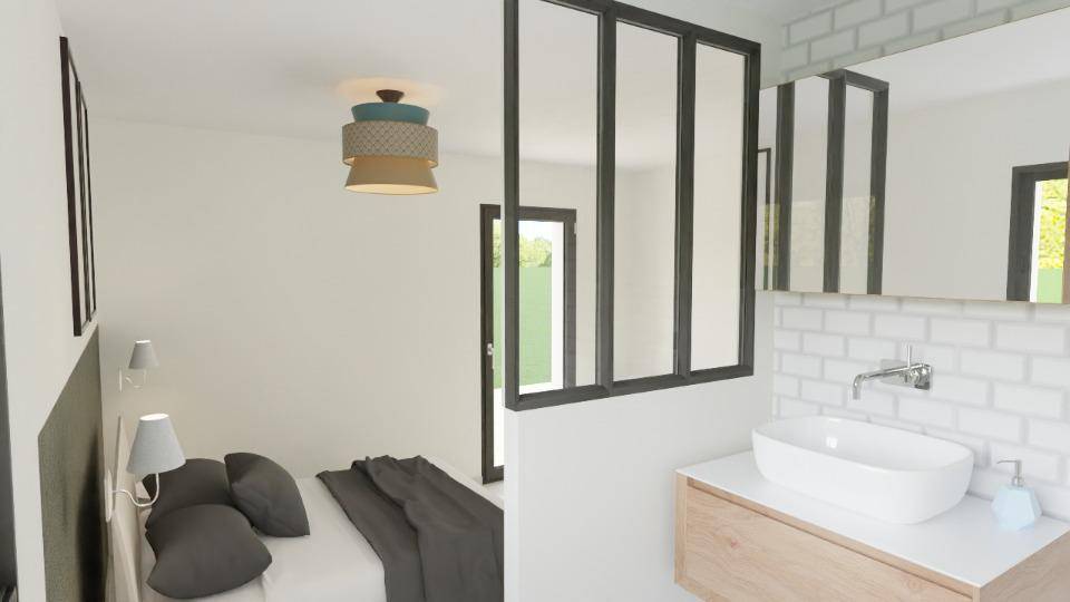 TERRAIN ET MAISONMaison de plain-pied de 90 m² – style traditionnelCharmante maison de plain-pied en L d’environ 90 m², au style traditionnel et fonctionnel, idéale pour une famille ou pour un projet de résidence secondaire.Elle se compose de :Une belle pièce de vie traversante, lumineuse et conviviale,Trois chambres confortables,Une salle d’eau moderne équipée d’une grande douche, d’une vasque et d’un WC suspendu indépendant,Un garage accolé pouvant être ajouté selon vos besoins.Maison pensée pour allier confort, praticité et charme de l’habitat de plain-pied.