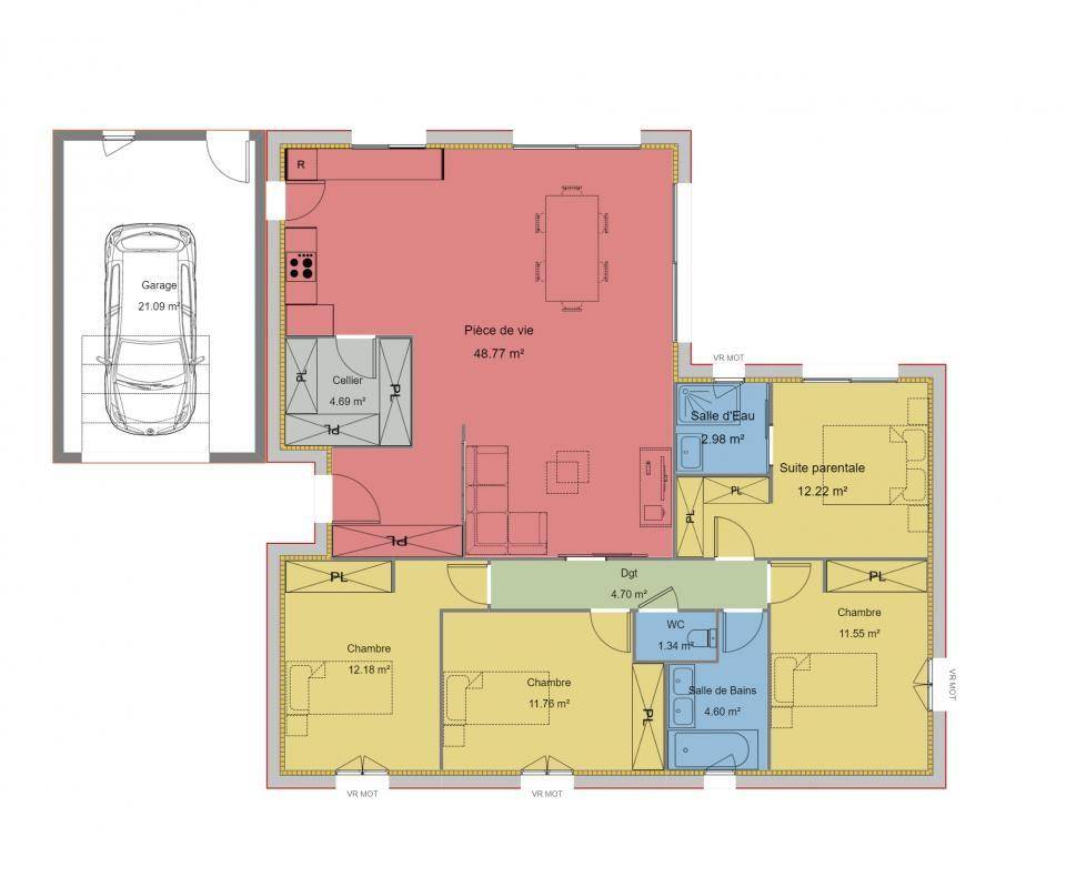 TERRAIN ET MAISONUne maison contemporaine qui allie élégance, confort et performance !Avec ses 80 m² parfaitement agencés, cette maison offre un style moderne et lumineux, pensé pour répondre aux exigences de confort d’aujourd’hui. Conforme à la réglementation environnementale RE2020, elle conjugue esthétique, efficacité énergétique et bien-être au quotidien.La pièce de vie de 37,80 m², véritable coeur de la maison, profite d’une luminosité traversante et d’un agencement fluide. La cuisine ouverte s’intègre harmonieusement pour créer un espace convivial et accueillant. Une verrière (en option) peut venir sublimer la séparation entre l’entrée et le séjour pour renforcer le caractère contemporain de l’ensemble.L’espace nuit se compose de trois chambres confortables avec rangements intégrés, d’une salle de bains fonctionnelle et d’un WC indépendant. Le cellier attenant à la cuisine facilite le rangement et communique directement avec le garage de 15,68 m², idéal pour le stationnement ou un espace de stockage complémentaire.Les prestations sont à la hauteur de vos attentes avec des volets roulants électriques et leur centralisation, une domotique intégrée pour plus de confort et un chauffage par pompe à chaleur à la fois économique et respectueux de l’environnementAdaptable à votre terrain et à votre mode de vie, ce modèle saura devenir la maison qui vous ressemble, alliant modernité, confort et praticité.Contactez-moi au (Numéro supprimé) pour en discuter et imaginer ensemble votre future maison.Olivier PUAUX – Conseiller Maisons France Confort