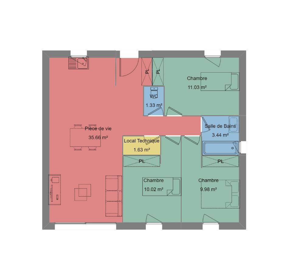 Cette maison de 73 m² de plain-pied séduit par son plan optimisé et son confort moderne :