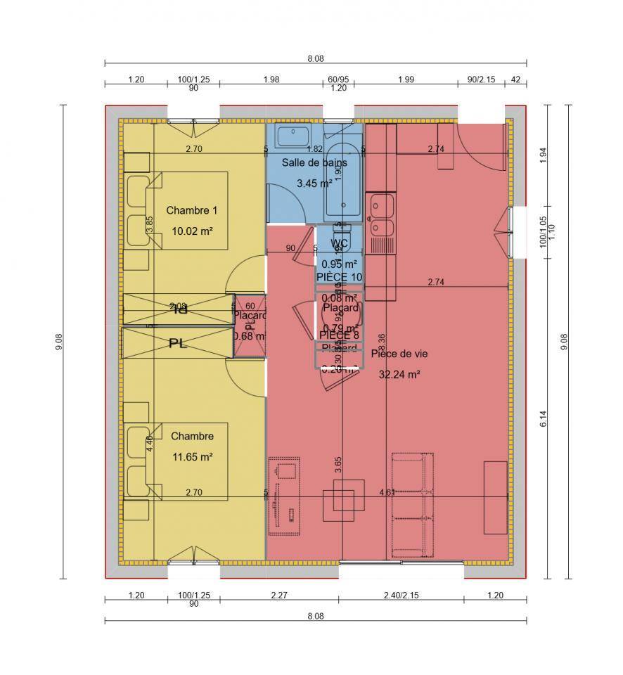 Une maison contemporaine qui allie élégance, confort et performance !Avec ses 80 m² parfaitement agencés, cette maison offre un style moderne et lumineux, pensé pour répondre aux exigences de confort d’aujourd’hui. Conforme à la réglementation environnementale RE2020, elle conjugue esthétique, efficacité énergétique et bien-être au quotidien.La pièce de vie de 37,80 m², véritable coeur de la maison, profite d’une luminosité traversante et d’un agencement fluide. La cuisine ouverte s’intègre harmonieusement pour créer un espace convivial et accueillant. Une verrière (en option) peut venir sublimer la séparation entre l’entrée et le séjour pour renforcer le caractère contemporain de l’ensemble.L’espace nuit se compose de trois chambres confortables avec rangements intégrés, d’une salle de bains fonctionnelle et d’un WC indépendant. Le cellier attenant à la cuisine facilite le rangement et communique directement avec le garage de 15,68 m², idéal pour le stationnement ou un espace de stockage complémentaire.Les prestations sont à la hauteur de vos attentes avec des volets roulants électriques et leur centralisation, une domotique intégrée pour plus de confort et un chauffage par pompe à chaleur à la fois économique et respectueux de l’environnementAdaptable à votre terrain et à votre mode de vie, ce modèle saura devenir la maison qui vous ressemble, alliant modernité, confort et praticité.Contactez-moi au (Numéro supprimé) pour en discuter et imaginer ensemble votre future maison.Olivier PUAUX – Conseiller Maisons France Confort