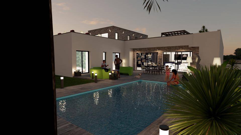 Conçue spécialement pour les grands terrains du sud de la France, cette maison contemporaine en L s'articule autour de deux ailes perpendiculaires, créant un espace extérieur protégé des regards tout en valorisant la vue sur le paysage.