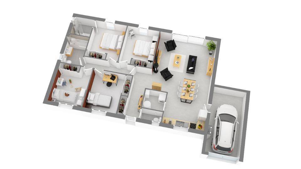 TERRAIN ET MAISONL’AUTAN est une maison sur sous-sol complet de 86 m². Son plan en « L » est adapté à un mode de vie contemporain, tout en favorisant l’intimité de ses habitants. Le salon séjour particulièrement lumineux, propose de grandes ouvertures avec une baie vitrée pour accéder à votre jardin composé de trois grandes chambres et d’une belle salle d’eau, vous serez séduit par l’utilisation des espaces.De plus, votre sous-sol complet restera facilement modulable tout au long de votre vie familiale. Ce sous-sol vous permet la création d’espaces de stockage non négligeables. Vous pourrez y entreposer vos affaires de ski, vos produits de saisons, votre cave à vins, votre salle de sport… N’attendez-plus et contactez-nous pour construire votre projet de vie dans le Tarn, l’Aude, L’Hérault, la Haute-Garonne ainsi que les Pyrénées Orientales.