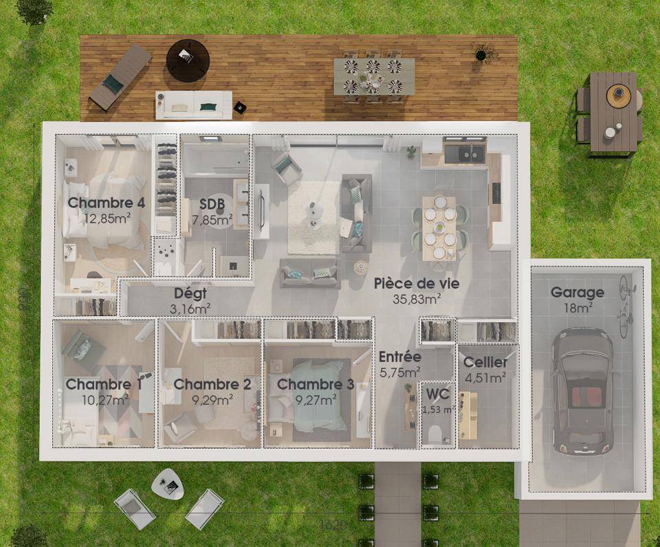 Nous construisons votre villa RE 2020 sur cette parcelle de 860m² non divisible, située dans un petit lotissement de 4 lots .