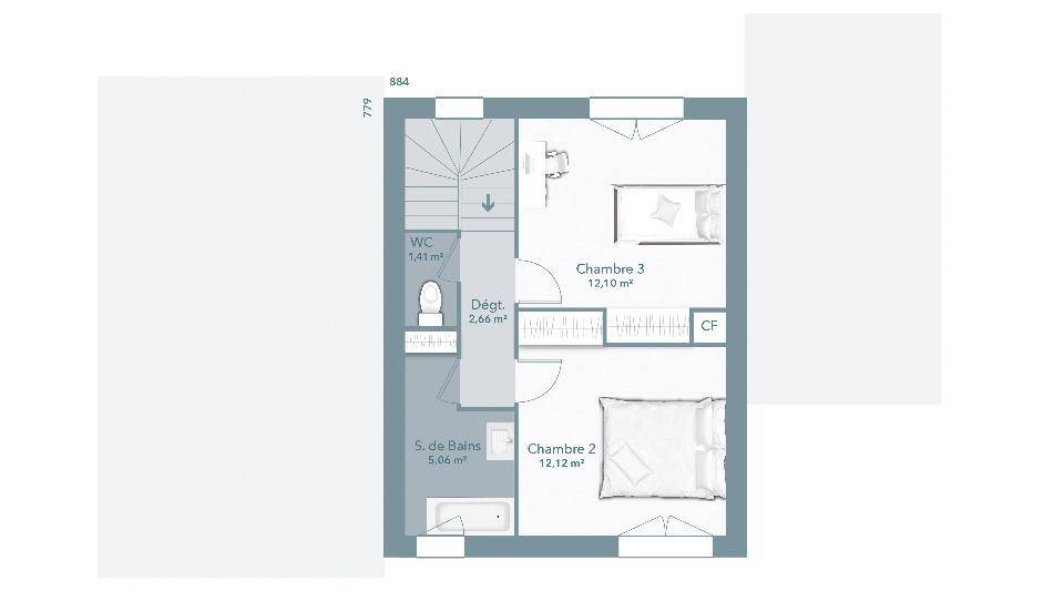 C'est une maison de 2 niveaux. Elle comporte trois chambres, une cuisine et deux salles de bains. La maison est neuve.