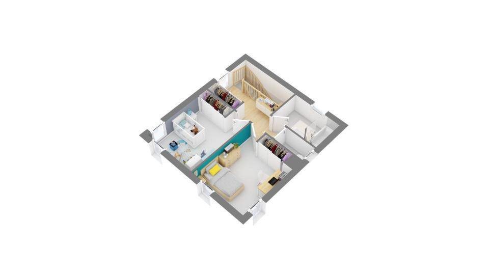 C'est une maison de 2 niveaux. Son intérieur offre trois chambres, une cuisine et deux salles de bains. La maison est neuve.