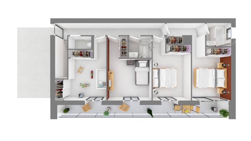 Un balcon confère à cette maison un gain d'espace appréciable.