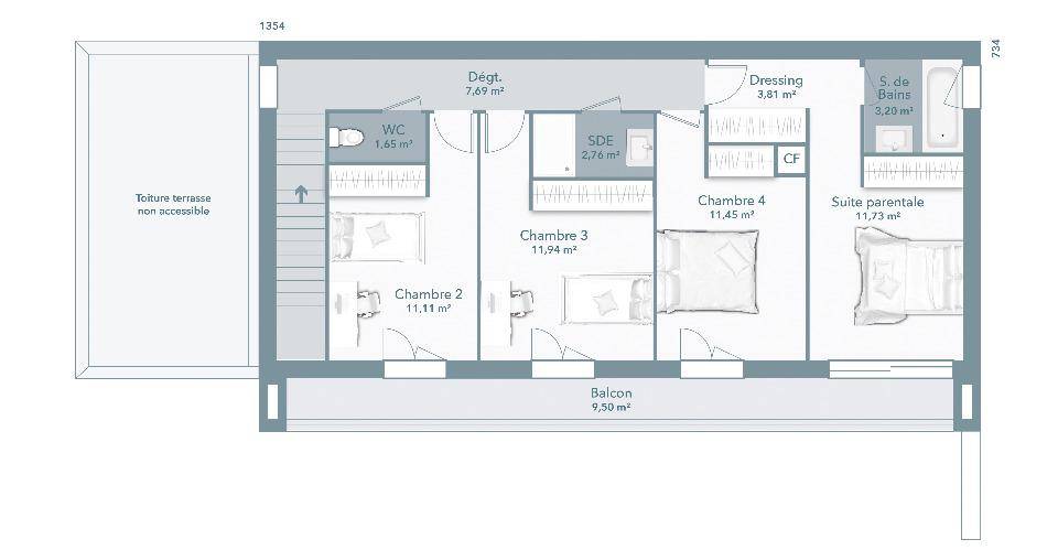 Il s'agit d'une maison de 2 niveaux. Elle est neuve.