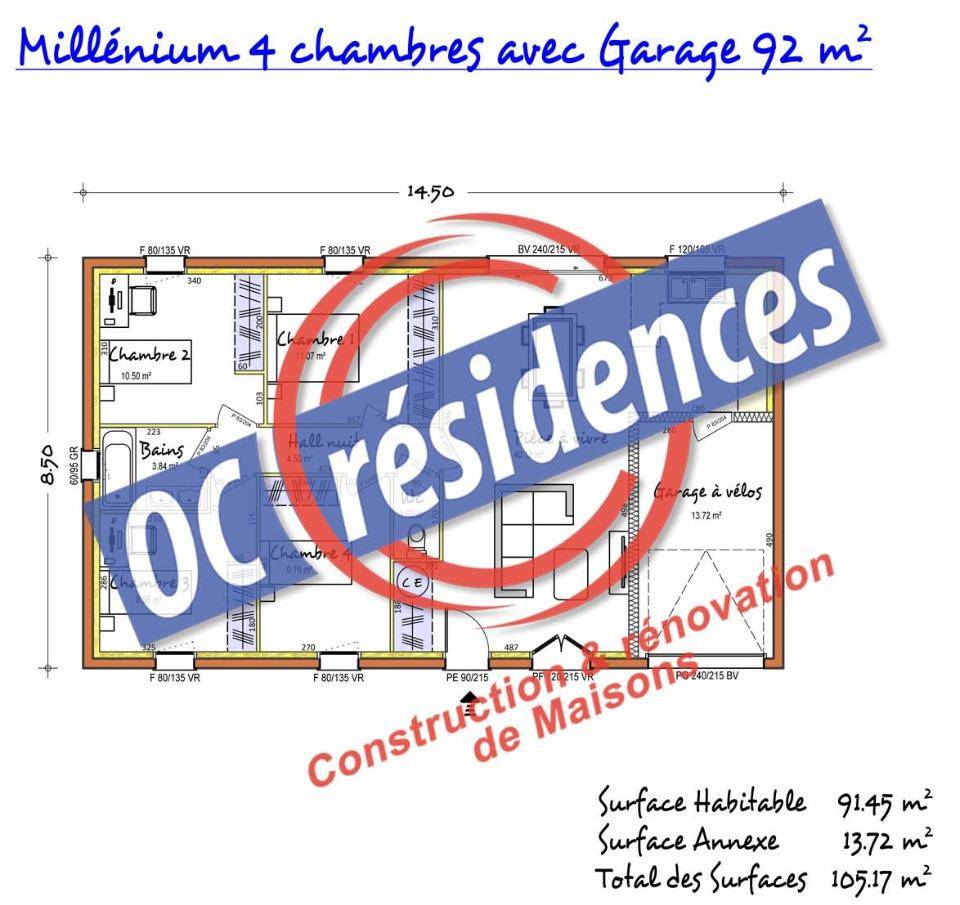 TERRAIN ET MAISONLa millenium 4 chambres est le plain-pied idéal pour toute la famille. La villa se compose d’un vaste et lumineux Salon/Séjour doté d’une grande baie vitrée attenant à un garage. Le coté nuit s’articule autour de 4 chambres avec placard, un WC indépendant et une grande salle de bains. Cette maison, d’architecture sobre et élégante, est à construire dans le département du Tarn, l’Aude, l’Hérault, la Haute-Garonne ainsi que les Pyrénées Orientales par Oc résidences, votre constructeur sur mesure en Occitanie.