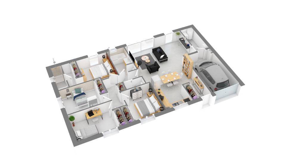 TERRAIN ET MAISONOc résidences, constructeur de maisons individuelles vous propose cette maison neuve à construire dans le département du Tarn, l’Aude, l’Hérault, la Haute-Garonne ainsi que les Pyrénées Orientales. Le modèle Matinale, résolument contemporain et fonctionnel, se compose d’une grande pièce à vivre traversante de 43 m² avec cuisine ouverte. Le coté nuit s’articule autour de 3 grandes chambres avec placard, une grande Salle de Bains de 7,5 m² avec baignoire, double vasque et un grand espace douche. Son garage de 24 m² vous permettra de stationner votre voiture et de créer un espace de rangement pour votre quotidien. Oc Résidences est votre constructeur sur mesure en Occitanie.