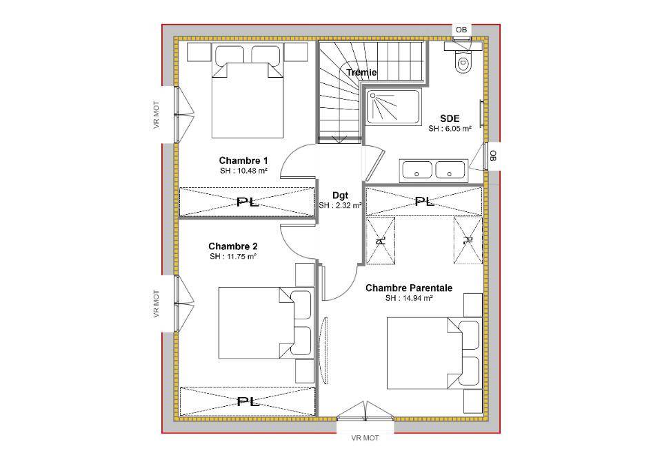 Il s'agit d'une maison de 2 niveaux. Elle est neuve à construire.