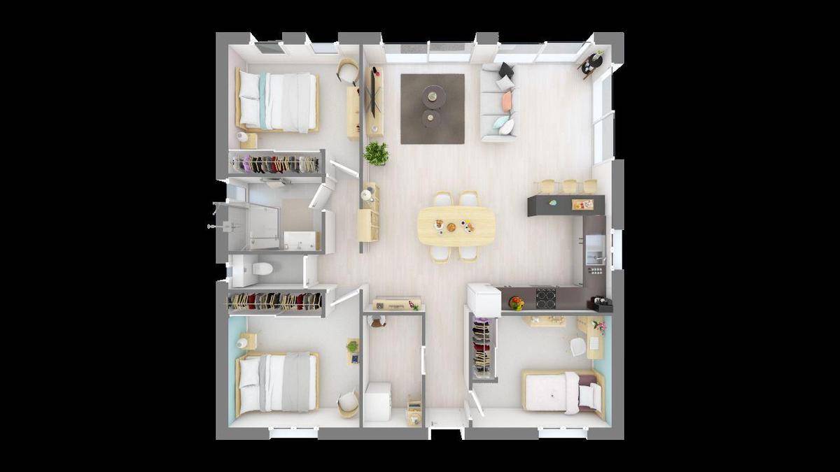 Prix avec assurance dommages-ouvrage comprise, hors VRD, terrain viabilisé, frais de notaire non compris, frais divers non compris. Terrain sélectionné et vu pour vous sous réserve de disponibilité et au prix indiqué par notre partenaire foncier. Non mandaté pour la vente du terrain. Visuels non contractuels.