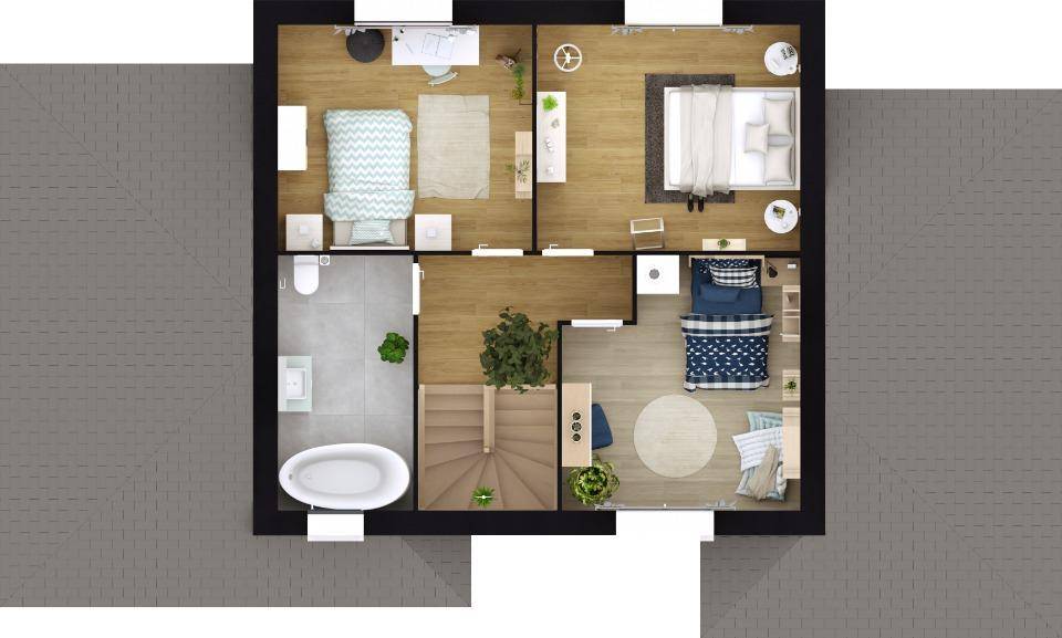 Il s'agit d'une maison de 2 niveaux. Elle est neuve.