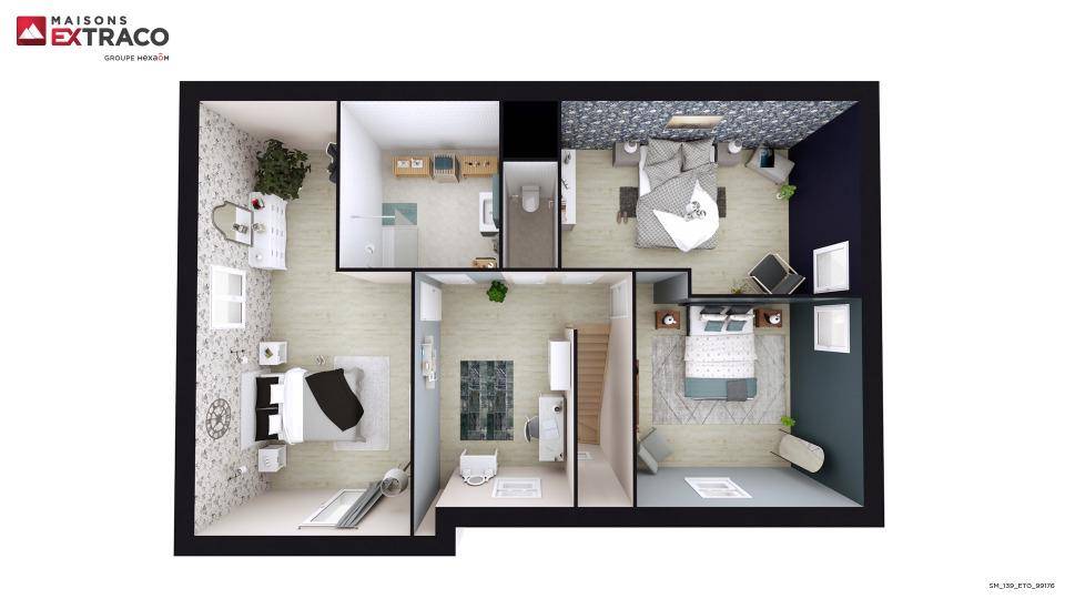 Cette maison possède 2 niveaux. Son intérieur se divise en quatre chambres, une cuisine et deux salles de bains. Cette maison est neuve.