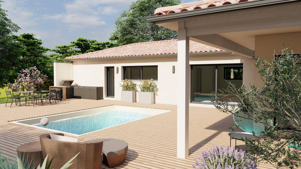 TERRAIN ET MAISONSur ce terrain, nous vous proposons cette maison neuve : la Blainium, une maison résolument moderne et très singulière. La Blainium, une maison de plain-pied contemporaine, propose une façade très stylée et originale avec ses jeux de toiture et de façades. Par ailleurs, ses grandes fenêtres laissent entrer généreusement la lumière extérieure. Cette demeure est disponible en plusieurs variantes, dans des dimensions allant de 85 à 125 m². En configuration 3 ou 4 chambres, avec ou sans bureau, dressing, salle d’eau privative, notre seule limite c’est votre imagination.Avec une surface de 110 m², cette maison dispose de 3 chambres et de 4 pièces. En partie jour, vous disposerez d’un hall d’entrée qui donne sur un vaste séjour, une cuisine ouverte qui se prête à accueillir un grand îlot central, et un cellier. Le garage pratique d’accès est accolé. Parmi les caractéristiques principales, vous trouverez un toit plat, un garage accolé, un dressing et une suite parentale.Les options les plus demandées par nos clients sont également disponibles : menuiseries en aluminium, enduit bi-ton, plancher chauffant et double garage. Cette maison neuve est basse consommation et conforme à la RE2020, vous garantissant ainsi une habitation éco-responsable et économique.Maisons Privat, constructeur centenaire avec les meilleurs avis clients de la région, vous permet de vivre votre rêve dans une maison unique. Posséder une maison neuve exceptionnelle n’a jamais été aussi accessible. La Blainium permet de vivre son rêve dans une maison unique. Cette habitation vous permettra de réaliser votre rêve : posséder une maison neuve exceptionnelle.