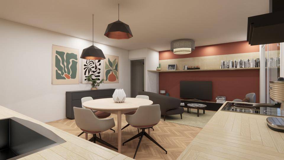 Son intérieur est composé de trois chambres, d'une cuisine ouverte sur une pièce de vie lumineuse, un garage et d'une salle de bains.