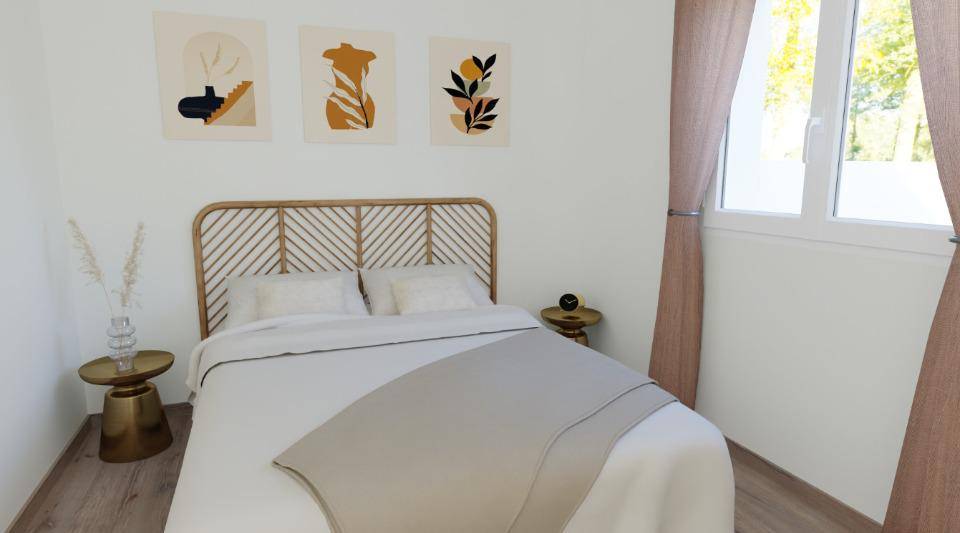 Maison de 80 m² comprenant : 3 chambres, une belle pièce de vie, salle de bain, WC séparés, normes RE2020, ainsi qu'un garage de 15 m².