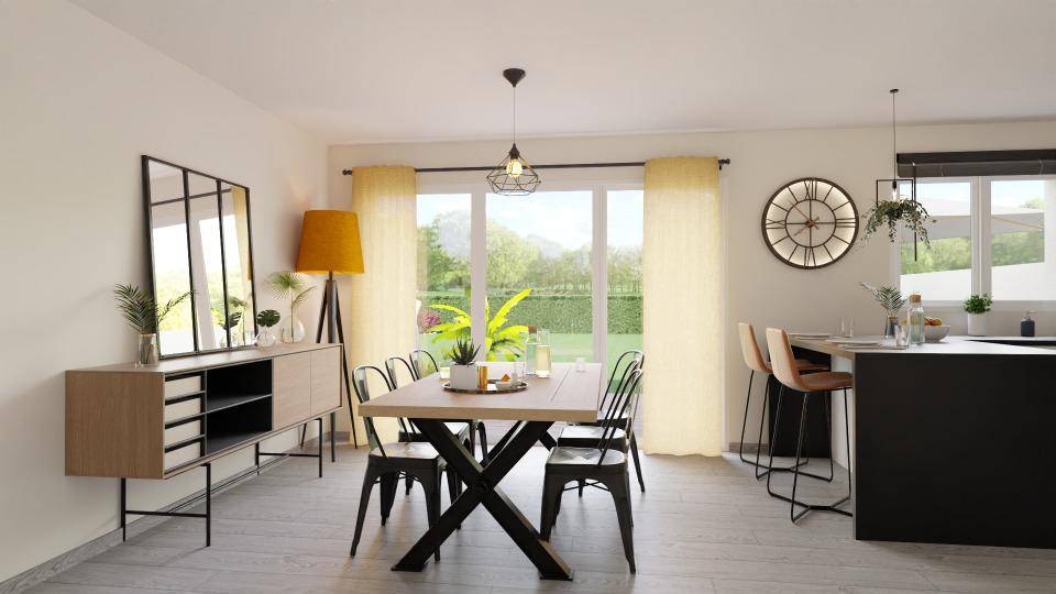 TERRAIN ET MAISONLumineuse ! Maison plain-pied 3 chambres dont une avec salle d’eau équipée avec une douche et un meuble vasque. Cette maison à partir de 87 m2 habitable vous procure une belle pièce de vie de 40 m2 orientée à l’avant. Cellier isolé attenant au garage de 16 m2. Grande cuisine ouverte sur la pièce de vie éclairée par une baie coulissante sur la façade. Vous accédez de votre cuisine sur une terrasse opposée au séjour. Orientation des chambres situées à l’arrière. Vous bénéficiez également d’une salle de bain équipée avec meuble vasque et baignoire. Carrelage grand format compris dans toute les pièces (hors chambres) et faïence au choix dans une large gamme disponible.Informations du terrain : Idéalement situé dans le lotissement avec une possibilité d'implantation adéquateInformations : Mathieu Blay au (Numéro supprimé).Prix incluant assurance dommages-ouvrage, VRD compris, terrain viabilisé, assainissement compris, frais de notaire non compris, taxes non comprises, frais divers non compris. Terrain sous réserve de disponibilité de notre partenaire foncier. Images non contractuelles.Cette annonce a été créée et diffusée avec le logiciel VITAHOME.