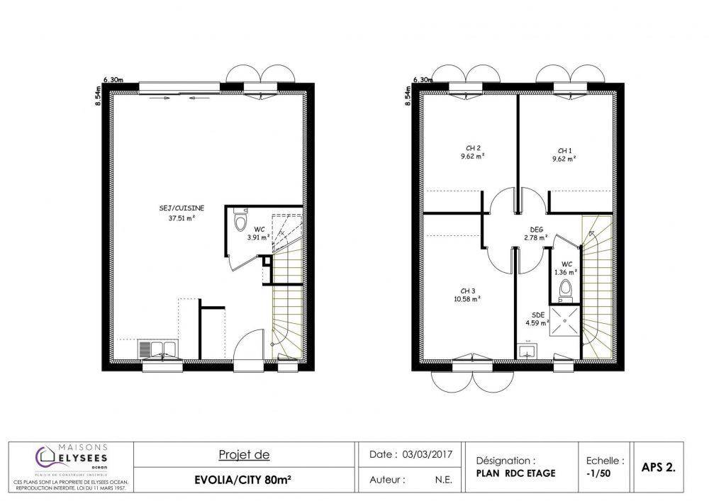 TERRAIN ET MAISONSur ce terrain, nous vous proposons cette maison neuve, modèle CITY, conçue par Elysees Ocean, le constructeur avec les meilleurs avis clients de la profession. Maison citadine et évolutive par excellence, CITY peut se transformer facilement au gré du développement de la famille. Avec une surface de 70 m², cette maison dispose de 2 chambres et de 3 pièces, offrant un espace de vie confortable et fonctionnel.Les caractéristiques principales de cette maison incluent une dalle étage en béton, garantissant robustesse et durabilité, ainsi qu’un excellent rapport qualité/prix. En plus de ses chambres à l’étage, CITY peut offrir une chambre au rez-de-chaussée, et peut être équipée d’un garage accolé, d’un car port ou de volets roulants, options les plus demandées par nos clients.Cette maison neuve est basse consommation et conforme à la réglementation environnementale RE2020, assurant des performances énergétiques optimales et un impact environnemental réduit.Ses finitions sont nombreuses et peuvent s’adapter à tout type d’architecture, qu’elle soit traditionnelle ou contemporaine, pour répondre à toutes vos envies et besoins.Ne manquez pas cette opportunité unique de devenir propriétaire d’une maison moderne, évolutive et éco-responsable avec Elysees Ocean. Contactez-nous dès aujourd’hui pour plus d’informations et pour organiser une visite.