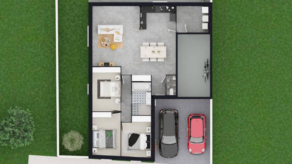 TERRAIN ET MAISONModulable à souhaits ! Votre maison plain-pied, 3 chambres, dont une équipée avec un dressing, et une salle d’eau équipée avec douche et meuble vasque. Disponible à partir de 89 m2 habitable. Porche d’entrée sur la façade avant. Belle pièce de vie de 40 m2 avec cuisine ouverte orientée sur la façade arrière, cellier isolé. Grande baie coulissante donnant sur la terrasse arrière. Vous disposez également d’une salle de bain équipée avec meuble vasque, et douche. Garage attenant de 17 m2. Orientation salon séjour traversant. Carrelage grand format compris dans toutes les pièces (hors chambres) et faïence au choix dans une large gamme disponible.Informations : Mathieu Dagusé au (Numéro supprimé).Prix incluant assurance dommages-ouvrage, VRD compris, terrain viabilisé, assainissement compris, frais de notaire non compris, taxes non comprises, frais divers non compris. Terrain sous réserve de disponibilité de notre partenaire foncier. Images non contractuelles.Cette annonce a été créée et diffusée avec le logiciel VITAHOME.