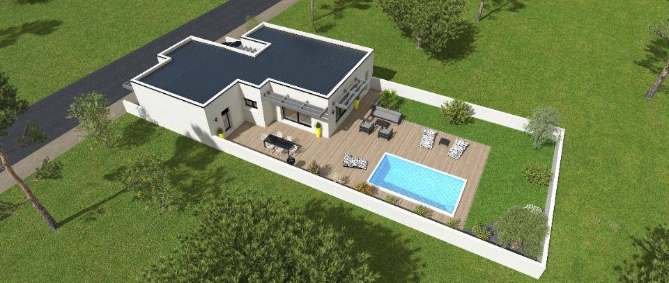 TERRAIN ET MAISONSur ce terrain, nous vous proposons cette maison neuve : la Blainium, une maison résolument moderne et très singulière. La Blainium, une maison de plain-pied contemporaine, propose une façade très stylée et originale avec ses jeux de toiture et de façades. Par ailleurs, ses grandes fenêtres laissent entrer généreusement la lumière extérieure. Cette demeure est disponible en plusieurs variantes, dans des dimensions allant de 85 à 125 m². En configuration 3 ou 4 chambres, avec ou sans bureau, dressing, salle d’eau privative, notre seule limite c’est votre imagination.Avec une surface de 110 m², cette maison dispose de 3 chambres et de 4 pièces. En partie jour, vous disposerez d’un hall d’entrée qui donne sur un vaste séjour, une cuisine ouverte qui se prête à accueillir un grand îlot central, et un cellier. Le garage pratique d’accès est accolé. Parmi les caractéristiques principales, vous trouverez un toit plat, un garage accolé, un dressing et une suite parentale.Les options les plus demandées par nos clients sont également disponibles : menuiseries en aluminium, enduit bi-ton, plancher chauffant et double garage. Cette maison neuve est basse consommation et conforme à la RE2020, vous garantissant ainsi une habitation éco-responsable et économique.Maisons Privat, constructeur centenaire avec les meilleurs avis clients de la région, vous permet de vivre votre rêve dans une maison unique. Posséder une maison neuve exceptionnelle n’a jamais été aussi accessible. La Blainium permet de vivre son rêve dans une maison unique. Cette habitation vous permettra de réaliser votre rêve : posséder une maison neuve exceptionnelle.