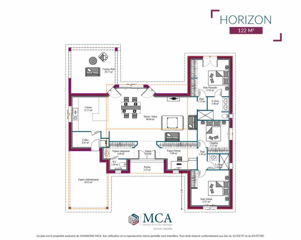 La maison bioclimatique HORIZON, d'une superficie de 122 m², associe modernité et écologie.