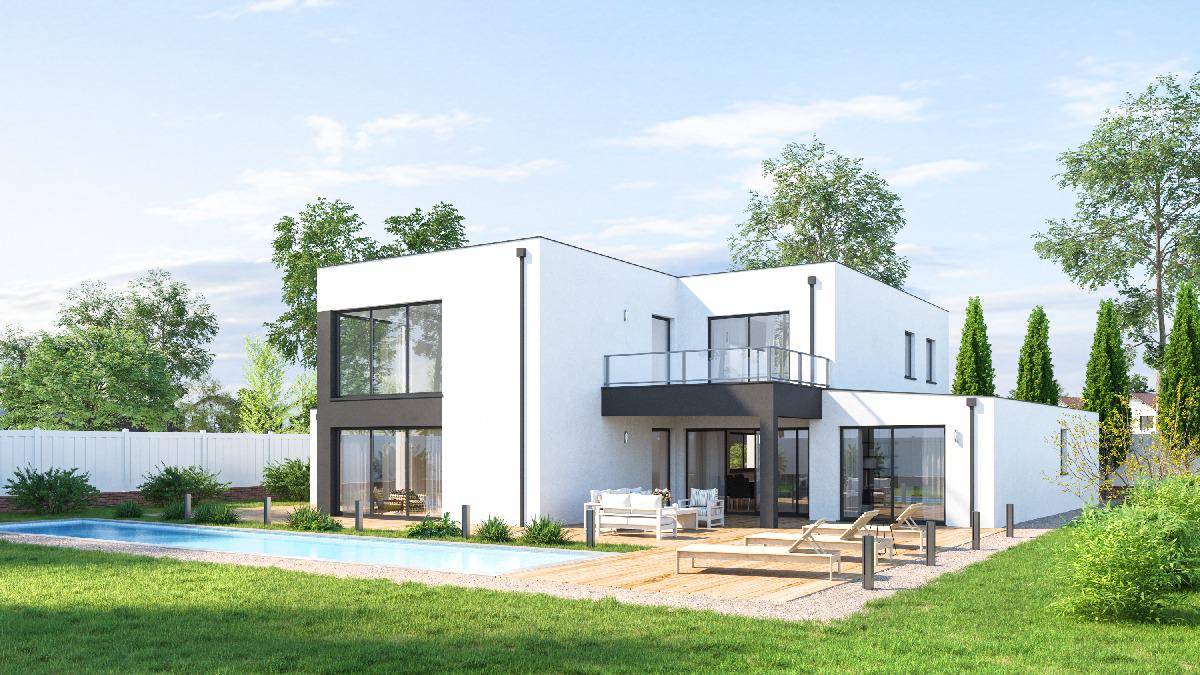 Superbe maison moderne à étage, la Louinium offre une surface habitable de 154 m² sur deux niveaux. La silhouette découpée de ce modèle contemporain à toit-terrasse, rehaussée par d’impressionnantes surfaces vitrées, en impose et charme immédiatement. Le revêtement extérieur bi-tons noir et blanc est très élégant.