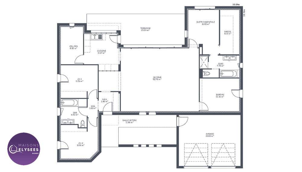Sur ce terrain, nous vous proposons cette maison neuve, le modèle Efficium, conçue par Elysees Ocean, le constructeur avec les meilleurs avis clients de la profession. Cette superbe maison contemporaine de 145 m², ouverte sur l'extérieur, est idéale pour profiter d'un jardin paysagé.