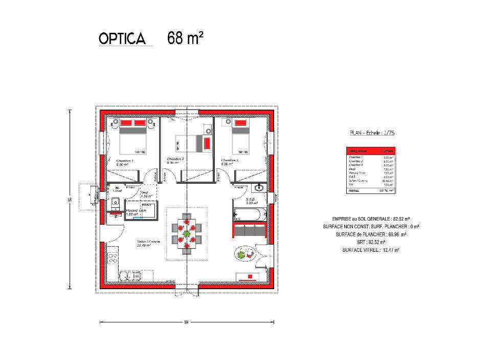 Alpha Constructions Jonzac vous propose en vente à Jonzac (17500), cette maison de 4 pièces de plain-pied de 68 m².