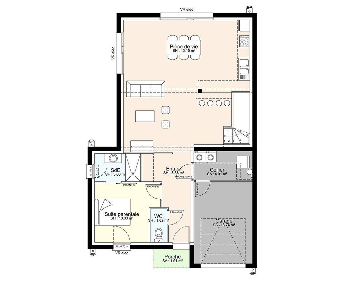 Prix incluant assurance dommages-ouvrage, VRD compris, terrain viabilisé, assainissement compris, frais de notaire non compris, taxes non comprises, frais divers non compris. Terrain sous réserve de disponibilité de notre partenaire foncier. Images non contractuelles.