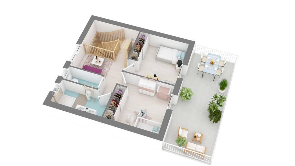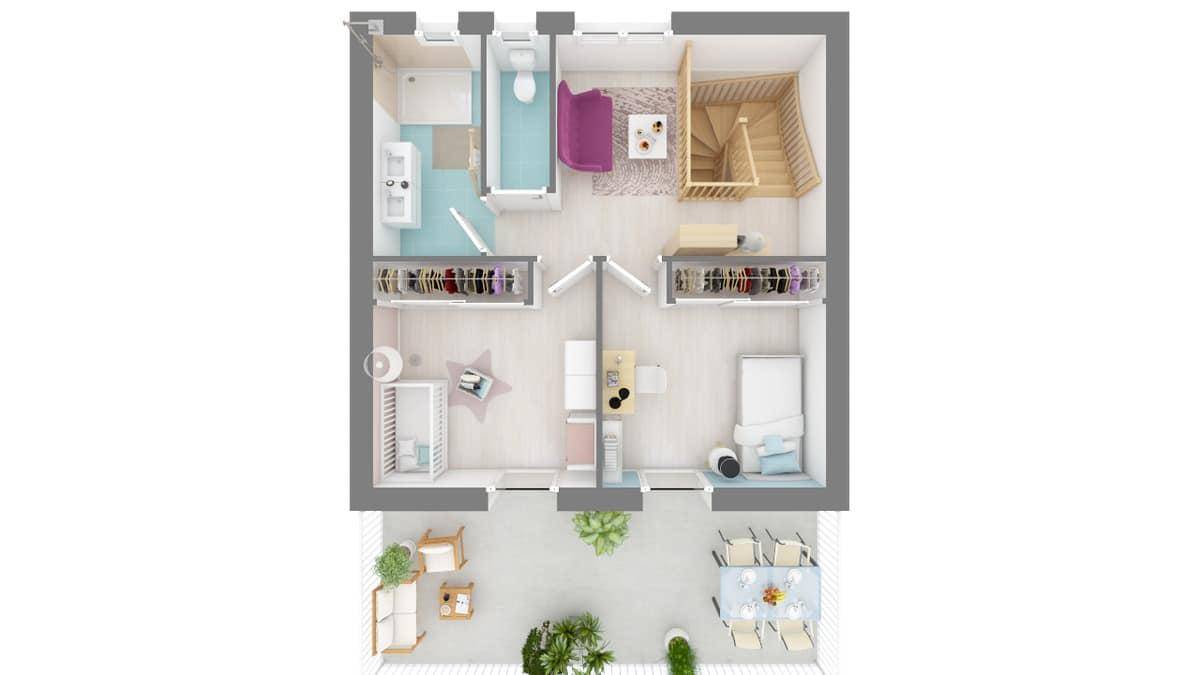 Si vous rêvez d’une maison dans les pins, dans l’arrière-pays de Charente-Maritime ou encore en bord de mer, cette superbe maison va vous faire craquer ! Le modèle Éole allie harmonieusement le style traditionnel au style contemporain, avec son toit tuilé et toit plat. Il se dégage une impression d’équilibre et on sait qu’elle procurera le bien-être.