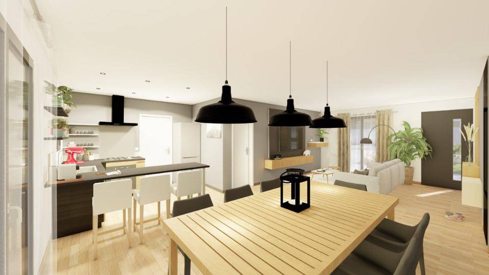 Le prix affiché comprend le terrain, les frais de notaire, et cette maison livrée prête à décorer.