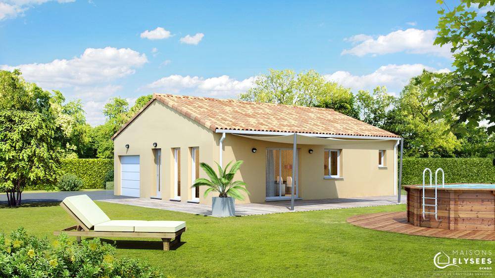 Sur ce terrain, nous vous proposons cette maison neuve, le modèle Okapia, conçue par Elysees Ocean, le constructeur avec les meilleurs avis clients de la profession. Cette maison de 81 m² est idéale pour un terrain étroit, notamment en bordure de mer.