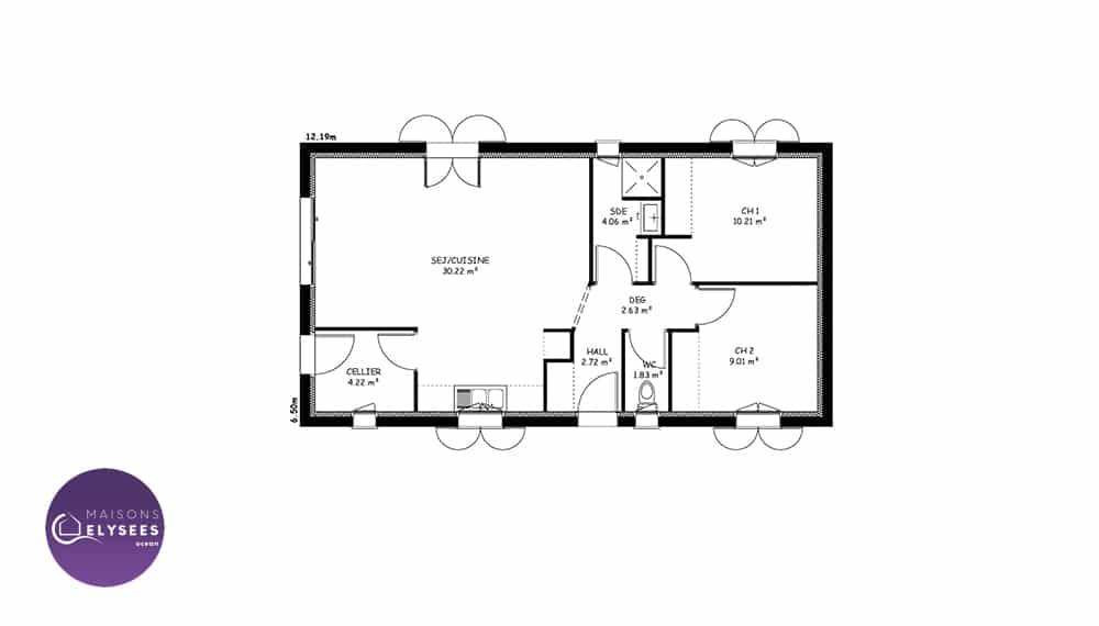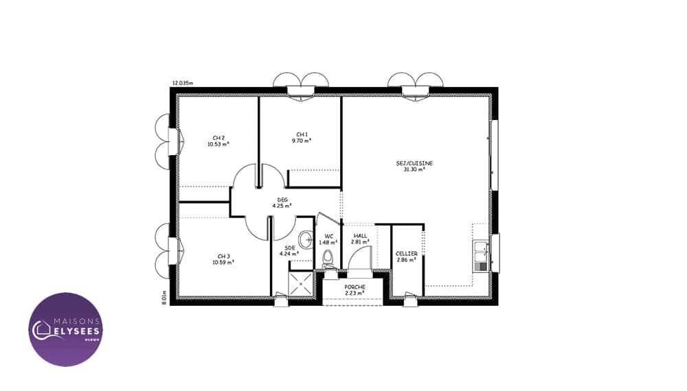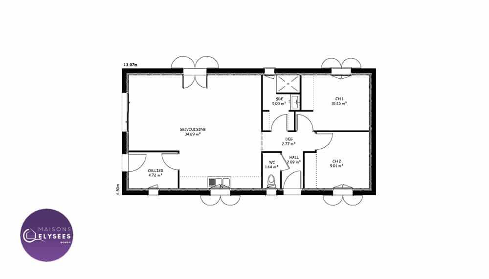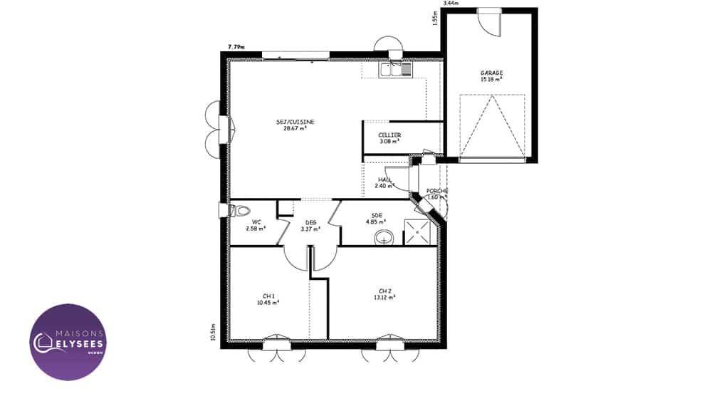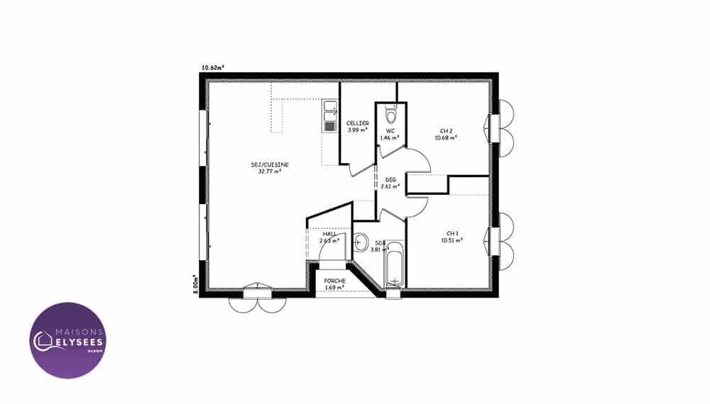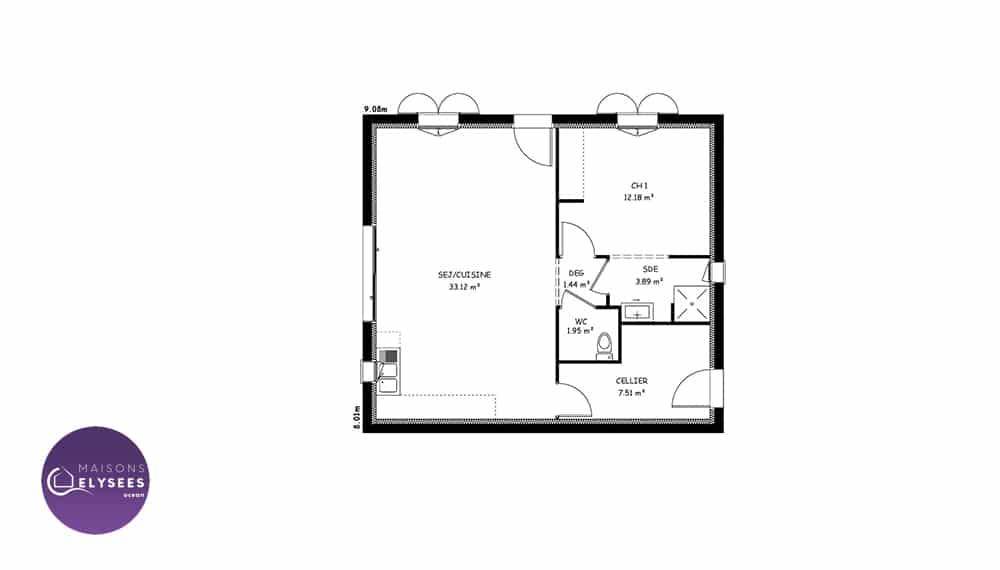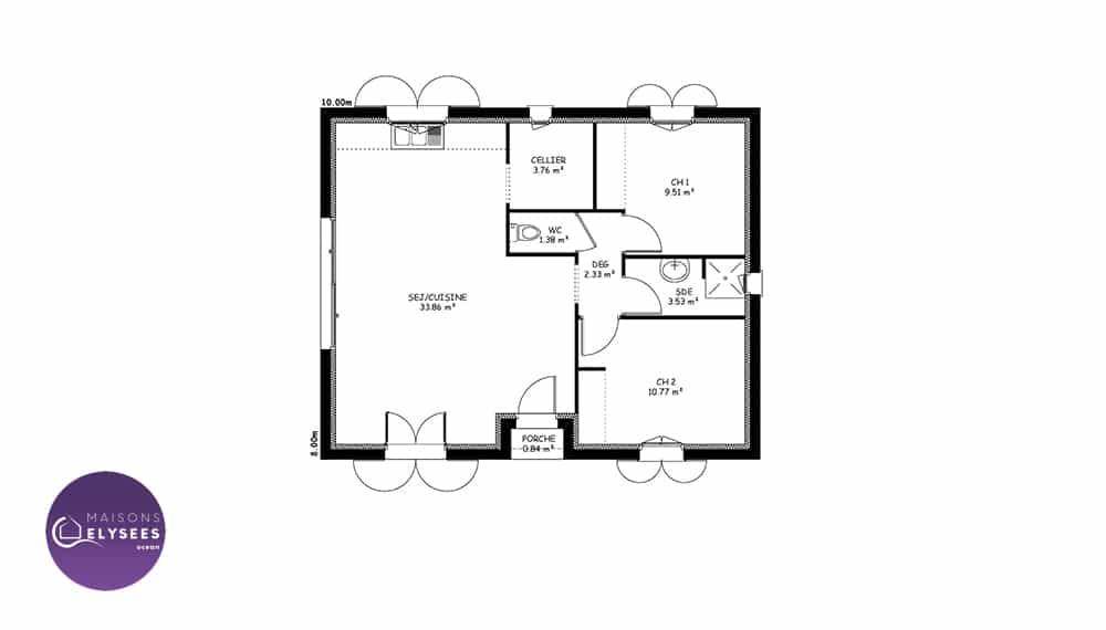 Sur ce terrain, nous vous proposons cette maison neuve, modèle Iona, construite par Elysees Ocean, le constructeur avec les meilleurs avis clients de la profession. Avec une surface de 80 m², cette maison compacte et lumineuse offre un excellent rapport qualité-prix.