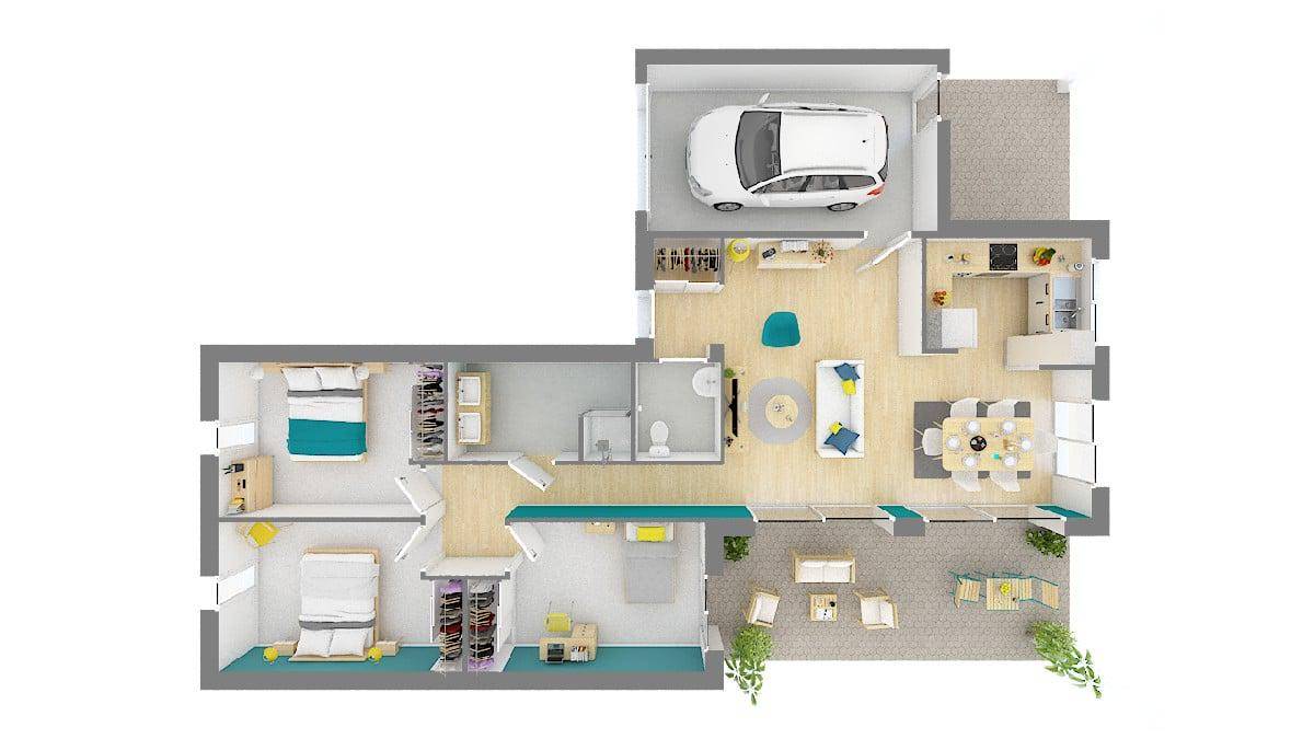 TERRAIN ET MAISONDe plain-pied ce modèle de maison contemporaine a été conçu par notre bureau d’études en 4 versions.4 plans pour cette maison contemporaine de plain-pied pour vous permettre de trouver la configuration qui correspond le mieux à vos envies. Changez les couleurs des jeux d’enduits selon vos préférences ou les impératifs du PLU, choisissez un plan de maison avec ou sans garage, préférez 3 à 4 chambres ou 3 chambres et un bureau ou 3 chambres et une plus grande pièce de vie …Une maison contemporaine et modulableL’avantage de la maison FLORIDE c’est définitivement sa modularité.Ce modèle résolument contemporain qui se décline en plusieurs versions, de 95 à 132 m², vous permet d’envisager plusieurs configurations selon votre mode de vie :une maison de 95 m² avec 3 chambres situées en retrait du salon-séjour et desservies par un dégagement tout en longueur,une maison de 105 m² avec 3 chambres et en complément un bureau ultra fonctionnel,une maison de 115 m² où le salon forme un L avec une cuisine semi-ouverte et 3 spacieuses chambres dont l’agencement optimise le confort acoustique de chacune,une maison de 132 m² comprenant un salon en L doté d’une triple exposition, 4 chambres, un bureau et un garage.Contact et renseignements: Cédric RÊTEUX (Numéro supprimé)