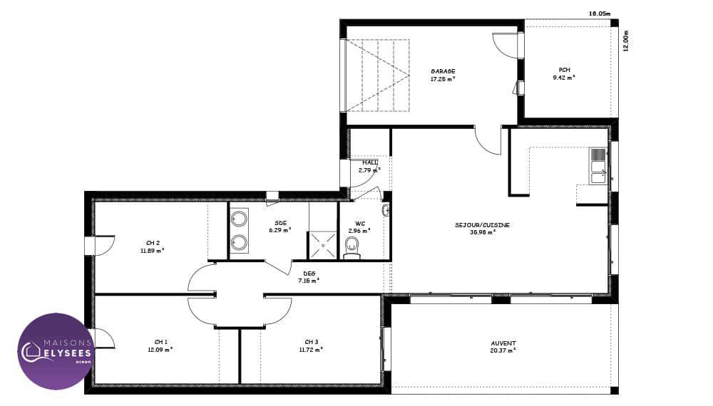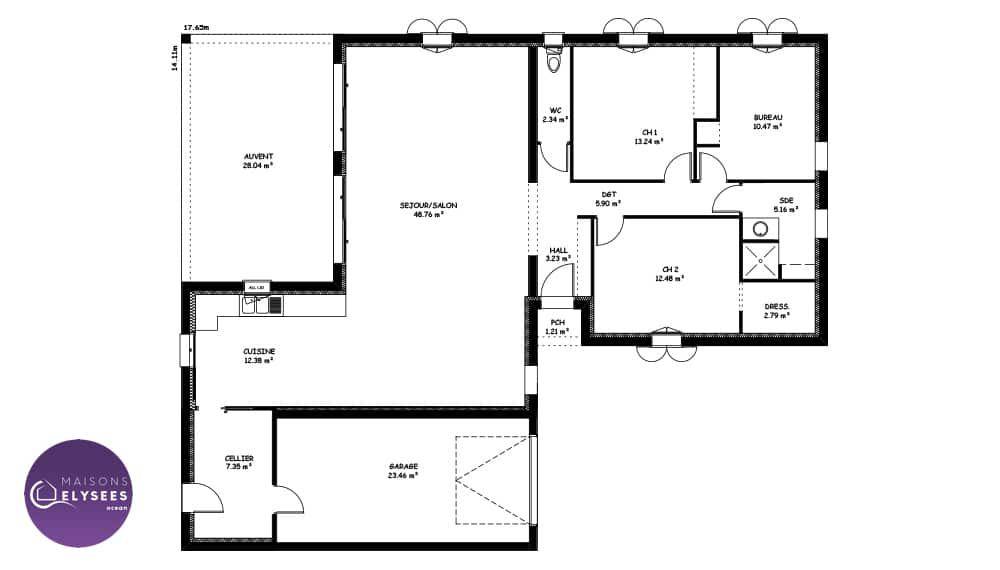 Sur ce terrain, nous vous proposons cette maison neuve, la Noria, conçue par Elysees Ocean, le constructeur aux meilleurs avis clients de la profession. Avec une surface de 103 m², cette maison offre un cadre de vie idéal pour toute la famille.