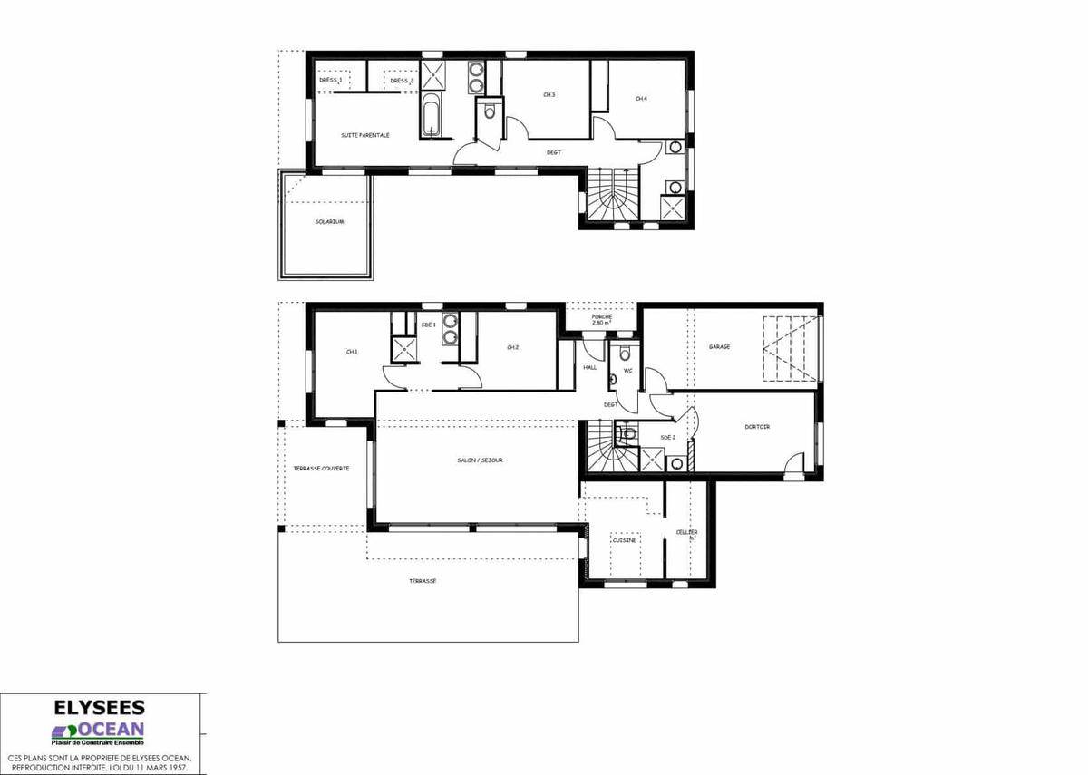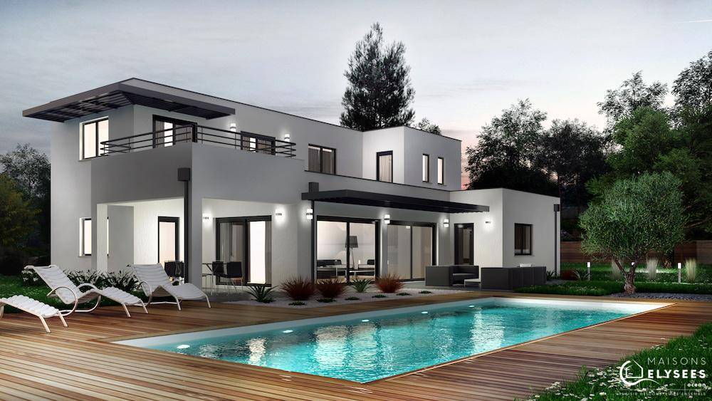 TERRAIN ET MAISONSur ce terrain, nous vous proposons cette maison neuve, la Palmyre, conçue par Elysees Ocean, le constructeur aux meilleurs avis clients de la profession. Avec une surface généreuse de 162 m², cette maison est idéale pour accueillir une famille nombreuse grâce à ses 4 chambres et 4 pièces.La Palmyre se distingue par ses caractéristiques exceptionnelles : un solarium pour profiter des journées ensoleillées, une suite parentale à l’écart avec un balcon privatif donnant sur un jardin paysagé, et une grande terrasse parfaite pour les moments de détente en plein air. Faisant partie de la Collection Plénitude, cette maison allie confort et modernité.Le grand séjour convivial, ouvert sur une cuisine spacieuse, est le cœur de la maison. Un petit cellier attenant permet de ranger les équipements techniques en toute discrétion. Les dortoirs et chambres doubles offrent un espace de vie confortable pour chaque membre de la famille.Un auvent généreux sur l’ouest incite à la rêverie tout en protégeant la maison des surchauffes estivales de fin d’après-midi. Les brises-soleils au-dessus des grandes baies vitrées assurent un confort optimal en été.Les options les plus demandées par nos clients, telles que les menuiseries en aluminium et la domotique, sont disponibles pour personnaliser votre maison selon vos envies.Enfin, cette maison neuve est basse consommation et conforme à la réglementation environnementale RE2020, garantissant des performances énergétiques optimales et un respect de l’environnement.Un véritable coup de cœur pour cette maison d’architecte contemporaine, la Palmyre est prête à devenir votre nouveau foyer. Ne manquez pas cette opportunité unique de vivre dans une maison alliant élégance, confort et modernité.