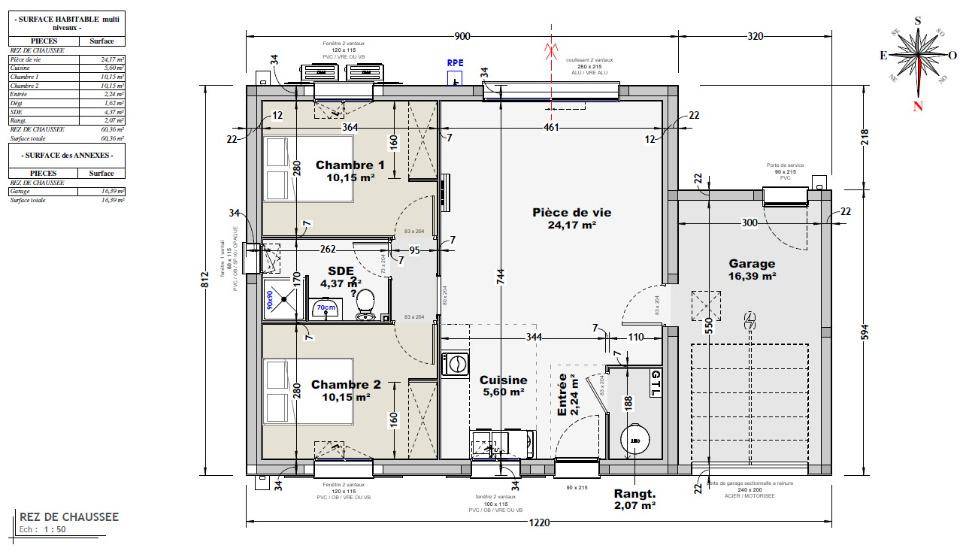 A St-Augustin, proche du centre bourg, nous proposons cette maison RE 2020 de plain-pied de 60 m² avec une pièce de vie traversante, 2 chambres, salle d'eau avec wc intégré, garage.