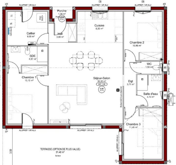 TERRAIN ET MAISONClassique et fonctionnelle ! Votre maison plain-pied à partir de 90 m2 habitable vous apporte une grande pièce de vie de 45 m2 avec cellier isolé, cuisine et coin repas attenant. Salon indépendant. 2 grandes baies coulissantes exposées sur la terrasse arrière vous offrent luminosité et confort. Vous disposez de 3 chambres dont une située sur la façade arrière. La salle de bain est aménagée avec meuble 2 vasques, une grande douche et une baignoire. Garage attenant de 16 m2. Orientation salon et pièce de vie principale exposées sur la terrasse à l’arrière. Carrelage grand format compris dans toute les pièces (hors chambres) et faïence au choix dans une large gamme disponible.Informations : Mathieu Dagusé au (Numéro supprimé).Prix incluant assurance dommages-ouvrage, VRD compris, terrain viabilisé, assainissement compris, frais de notaire non compris, taxes non comprises, frais divers non compris. Terrain sous réserve de disponibilité de notre partenaire foncier. Images non contractuelles.Cette annonce a été créée et diffusée avec le logiciel VITAHOME.