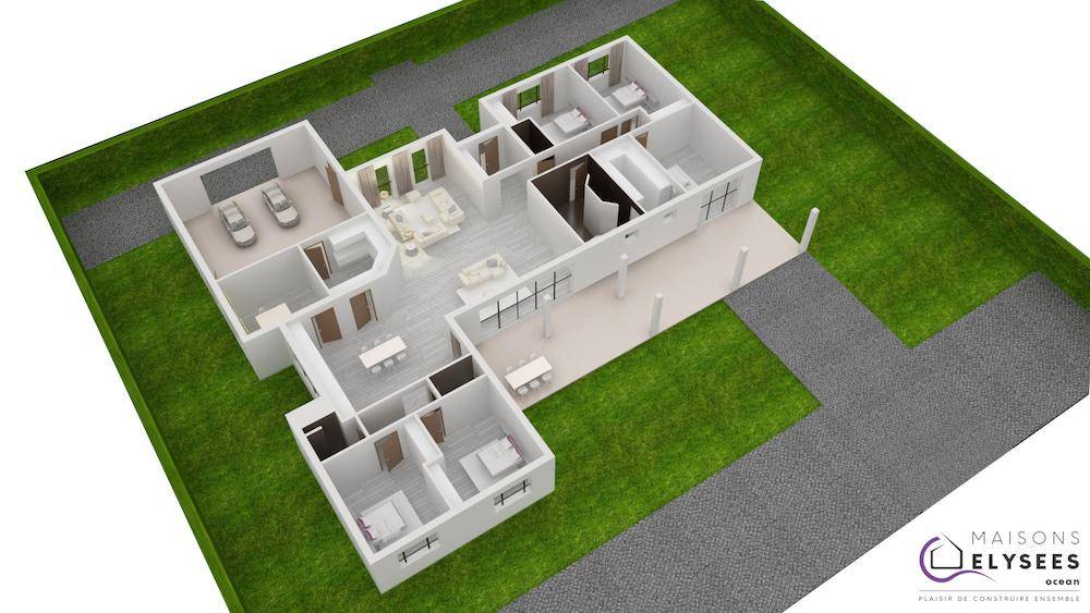 Sur ce terrain, nous vous proposons cette maison neuve, la Patia, conçue par Elysees Ocean, le constructeur aux meilleurs avis clients de la profession. Avec une surface de 123 m², cette maison moderne et élégante offre 3 chambres et 4 pièces, parfaitement agencées pour répondre à vos besoins.