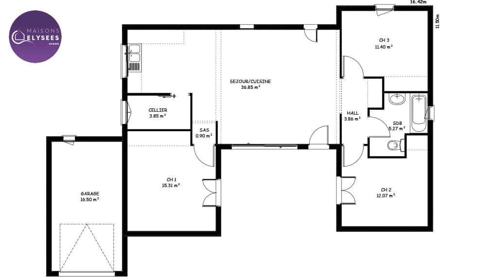 TERRAIN ET MAISONLumineuse ! Maison plain-pied 3 chambres dont une avec salle d’eau équipée avec une douche et un meuble vasque. Cette maison à partir de 87 m2 habitable vous procure une belle pièce de vie de 40 m2 orientée à l’avant. Cellier isolé attenant au garage de 16 m2. Grande cuisine ouverte sur la pièce de vie éclairée par une baie coulissante sur la façade. Vous accédez de votre cuisine sur une terrasse opposée au séjour. Orientation des chambres situées à l’arrière. Vous bénéficiez également d’une salle de bain équipée avec meuble vasque et baignoire. Carrelage grand format compris dans toute les pièces (hors chambres) et faïence au choix dans une large gamme disponible.Informations : Mathieu Dagusé au (Numéro supprimé).Prix incluant assurance dommages-ouvrage, VRD compris, terrain viabilisé, assainissement compris, frais de notaire non compris, taxes non comprises, frais divers non compris. Terrain sous réserve de disponibilité de notre partenaire foncier. Images non contractuelles.Cette annonce a été créée et diffusée avec le logiciel VITAHOME.