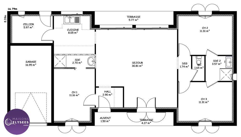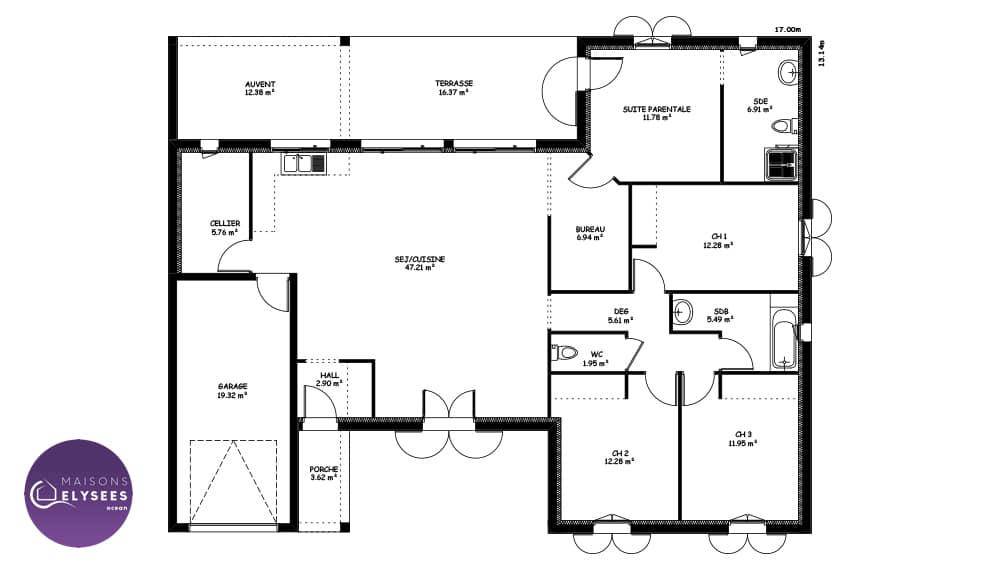 TERRAIN ET MAISONClassique et fonctionnelle ! Votre maison plain-pied à partir de 90 m2 habitable vous apporte une grande pièce de vie de 45 m2 avec cellier isolé, cuisine et coin repas attenant. Salon indépendant. 2 grandes baies coulissantes exposées sur la terrasse arrière vous offrent luminosité et confort. Vous disposez de 3 chambres dont une située sur la façade arrière. La salle de bain est aménagée avec meuble 2 vasques, une grande douche et une baignoire. Garage attenant de 16 m2. Orientation salon et pièce de vie principale exposées sur la terrasse à l’arrière. Carrelage grand format compris dans toute les pièces (hors chambres) et faïence au choix dans une large gamme disponible.Informations : Mathieu Dagusé au (Numéro supprimé).Prix incluant assurance dommages-ouvrage, VRD compris, terrain viabilisé, assainissement compris, frais de notaire non compris, taxes non comprises, frais divers non compris. Terrain sous réserve de disponibilité de notre partenaire foncier. Images non contractuelles.Cette annonce a été créée et diffusée avec le logiciel VITAHOME.
