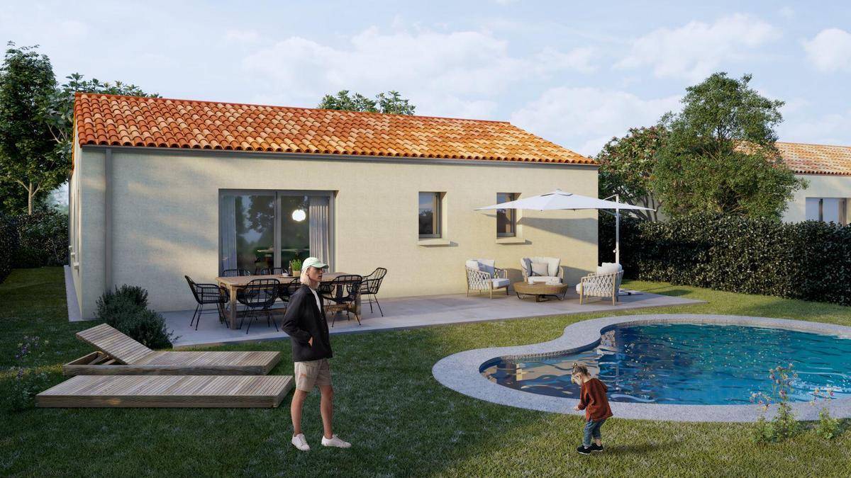 TERRAIN ET MAISONLumineuse ! Maison plain-pied 3 chambres dont une avec salle d’eau équipée avec une douche et un meuble vasque. Cette maison à partir de 87 m2 habitable vous procure une belle pièce de vie de 40 m2 orientée à l’avant. Cellier isolé attenant au garage de 16 m2. Grande cuisine ouverte sur la pièce de vie éclairée par une baie coulissante sur la façade. Vous accédez de votre cuisine sur une terrasse opposée au séjour. Orientation des chambres situées à l’arrière. Vous bénéficiez également d’une salle de bain équipée avec meuble vasque et baignoire. Carrelage grand format compris dans toute les pièces (hors chambres) et faïence au choix dans une large gamme disponible.Informations du terrain : Idéalement situé dans le lotissement avec une possibilité d'implantation adéquateInformations : Mathieu Blay au (Numéro supprimé).Prix incluant assurance dommages-ouvrage, VRD compris, terrain viabilisé, assainissement compris, frais de notaire non compris, taxes non comprises, frais divers non compris. Terrain sous réserve de disponibilité de notre partenaire foncier. Images non contractuelles.Cette annonce a été créée et diffusée avec le logiciel VITAHOME.