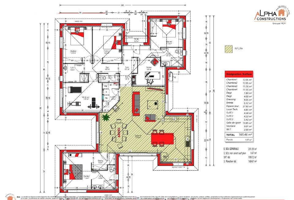 Etienne NEAU conseiller chez Alpha Constructions vous propose de découvrir cette superbe maison contemporaine de 165 m², pensée pour offrir un cadre de vie à la fois convivial, lumineux et fonctionnel. Sa conception en forme de L crée une parfaite harmonie entre les espaces de vie et les espaces nuit, tout en ouvrant largement la maison sur son extérieur. Dès l'entrée, le ton est donné : une vaste pièce de vie de près de 48 m², baignée de lumière, accueille un salon chaleureux et une cuisine moderne avec salle à manger. L'ensemble s'ouvre sur la terrasse, idéale pour profiter des beaux jours. Côté nuit, la maison propose quatre chambres spacieuses, dont une suite parentale avec dressing et salle d'eau privative, garantissant intimité et confort. Une salle de sport, un vestiaire, ainsi qu'un cellier fonctionnel complètent l'agencement haut de gamme de ce bien. Les prestations sont au rendez-vous : volumes généreux, circulation fluide, rangements optimisés et finitions soignées. Chaque détail a été imaginé pour conjuguer esthétique, confort et praticité au quotidien. Que vous recherchiez une résidence principale élégante ou une maison familiale haut de gamme, ce bien saura répondre à toutes vos attentes.