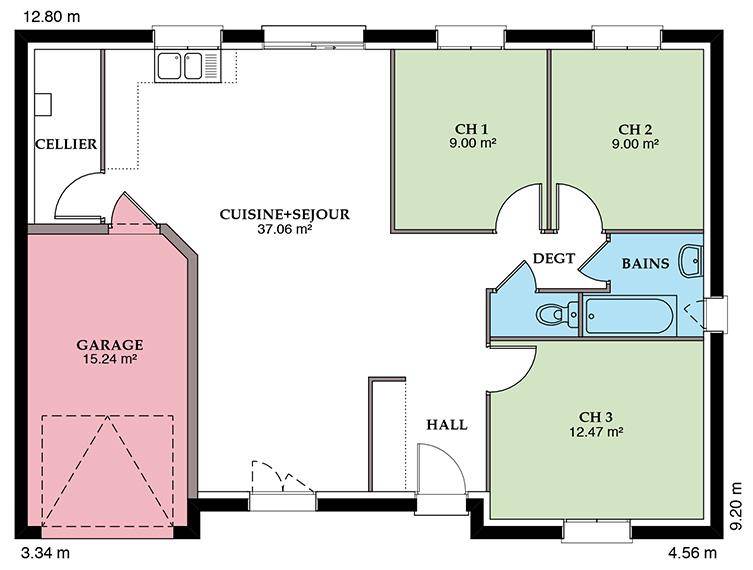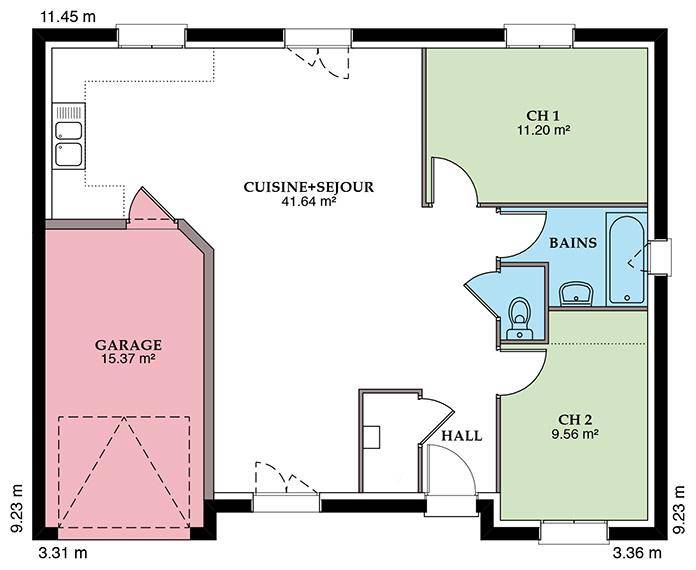 Découvrez la Prunière, une maison neuve de 87,5 m² avec garage intégré, qui marie style moderne et confort au quotidien. Disponible en toit 2 ou 4 pans, elle séduit par son architecture élégante et son agencement fonctionnel, idéal pour un couple ou une jeune famille.